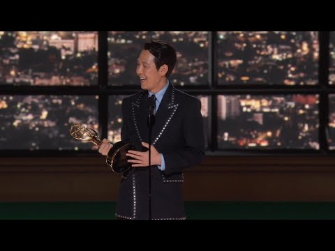 Lee Jung-jae accepts the Emmy for Lead Actor in a Drama Series for Squid Game at the 74th Emmy Awards....