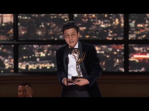 Hwang Dong-hyuk accepts the Emmy for Directing for a Drama Series for Squid Game at the 74th Emmy Awards....