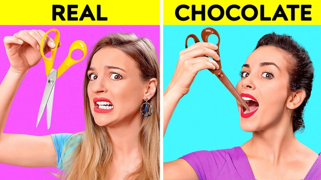 REAL VS CHOCOLATE FOOD CHALLENGE || Last To STOP Eating Wins! Taste Test by 123 GO! CHALLENGE