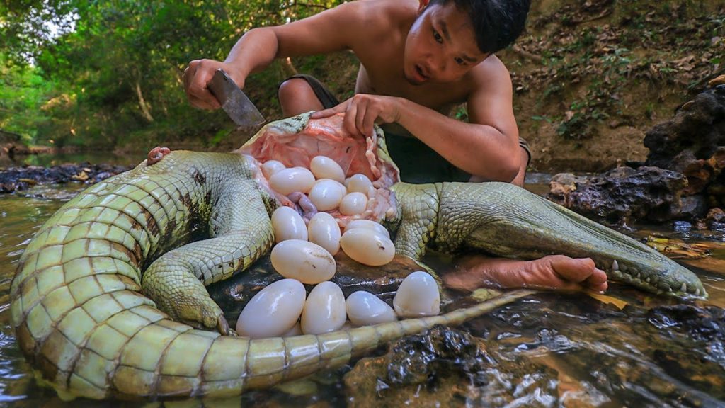 Amazing! Crocodile Eggs In Big Crocodile Stomach & Cooking at Home – Survival Time